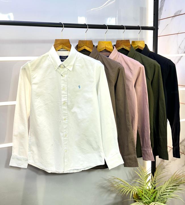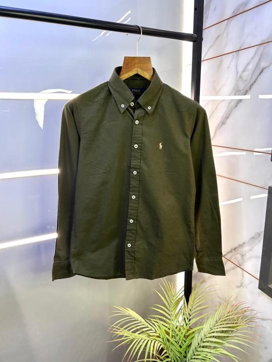 Home Shirts Ralph_Lauren Polo Olive Oxford Lycra Embroidery Logo Premium Shirt F2841-OL